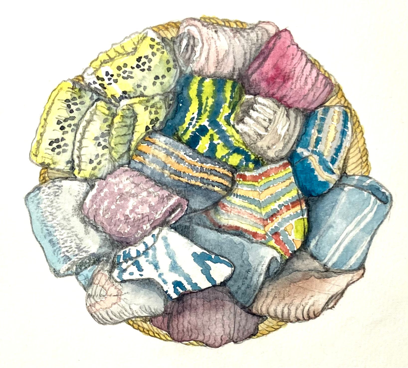 My stash of colorful fingering-weight yarn grew and would see me through my next year of students and teaching, writing and sock knitting.